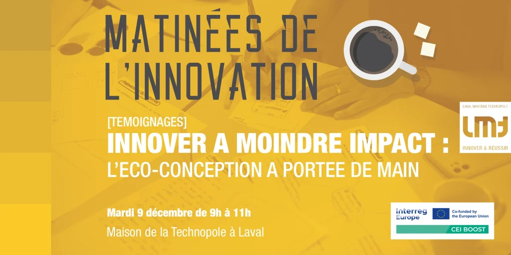 - 9h : « Produits, services, process : l’éco-conception à portée de main », par Sandrine Ellen-Trouillard, chargée d’accompagnement des entreprises chez Laval Mayenne Technopole